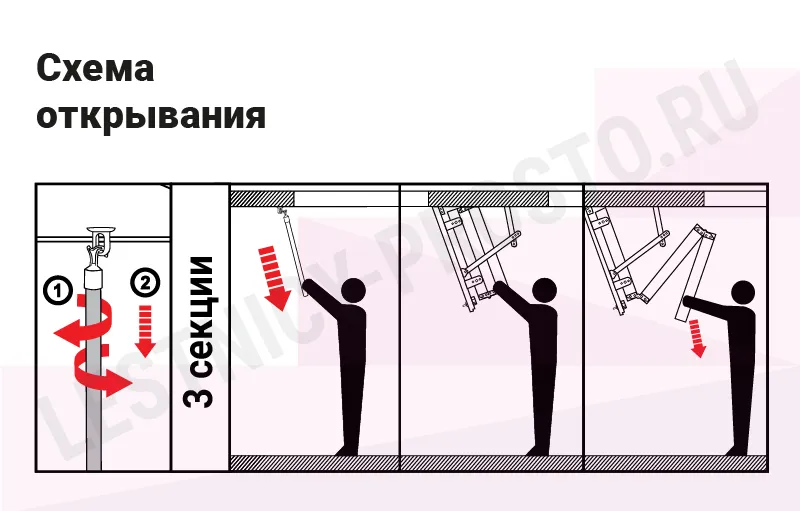 Лестница складная трехсекционная. Рабочая поверхность полностью выполнена из металла и покрашена порошковой краской. Термоизоляционная крышка типа "сэндвич", толщиной 86 мм, утеплена пенопластом, облицована с двух сторон ДCП белого цвета.