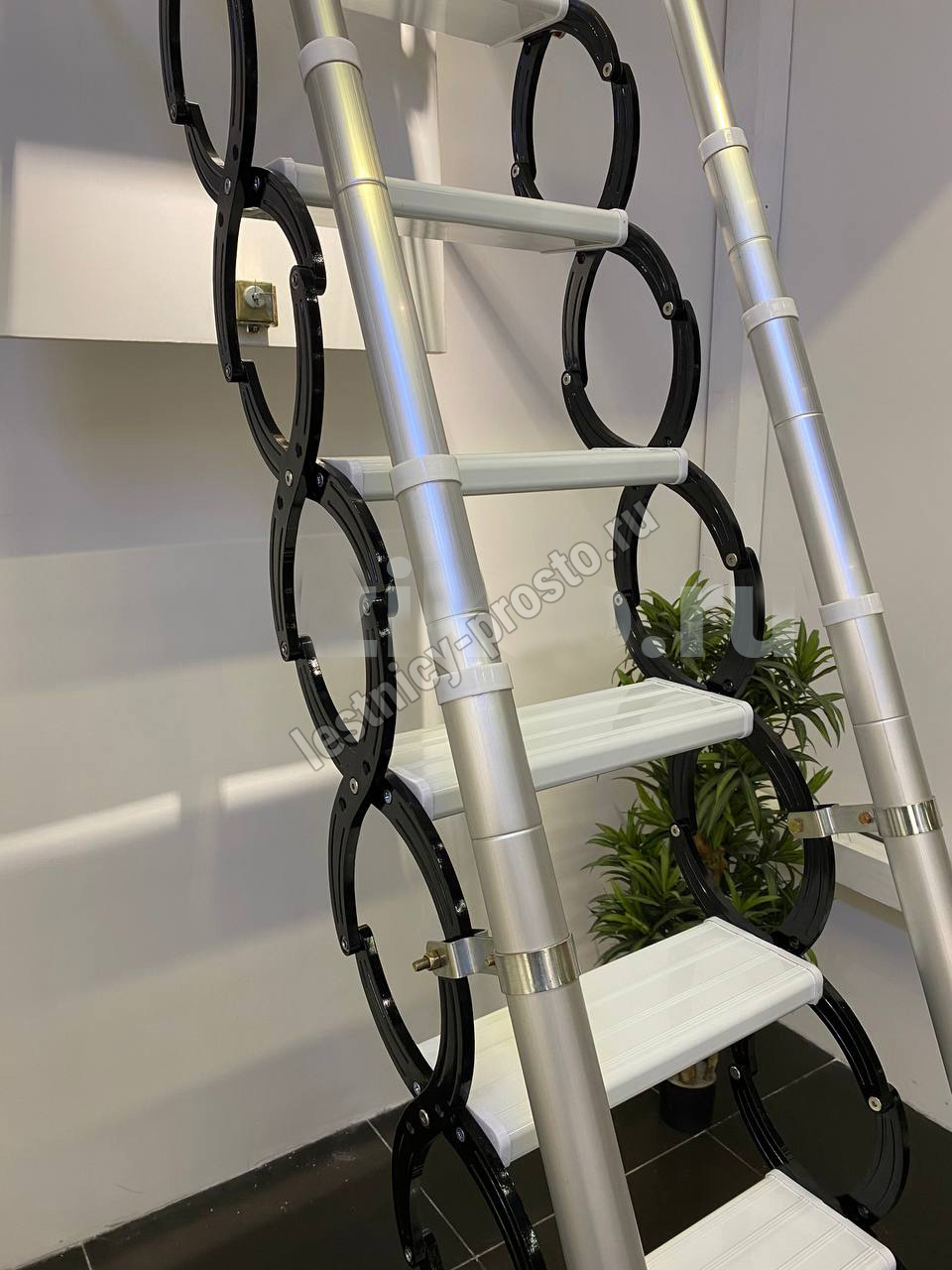 Ступени лестницы – из алюминия (белого цвета). Размер ступени 38х14 см