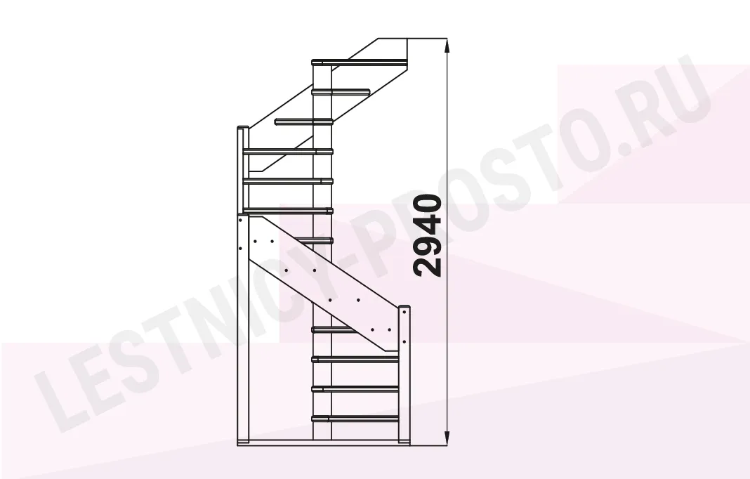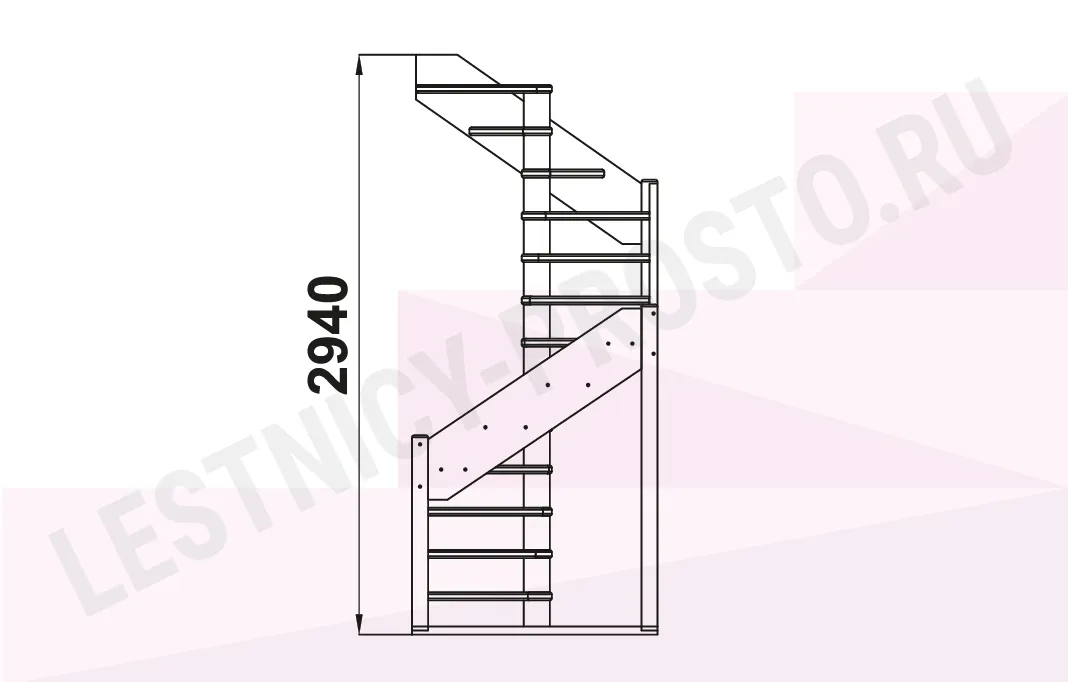 Небольшая аккуратная лестница, хорошо подойдет для помещения с небольшим проемом, поможет сэкономить пространство и организовать комфортный подъем на уровень выше. Возможны варианты лестницы из сосны под покраску, сосны, дуба, бука или ясеня. Для увеличения срока эксплуатации мы рекомендуем покрыть элементы лестницы защитным средством. Вы можете сделать это самостоятельно или заказать предварительное покрытие необходимым средством (или тонирование) в нашем цеху.