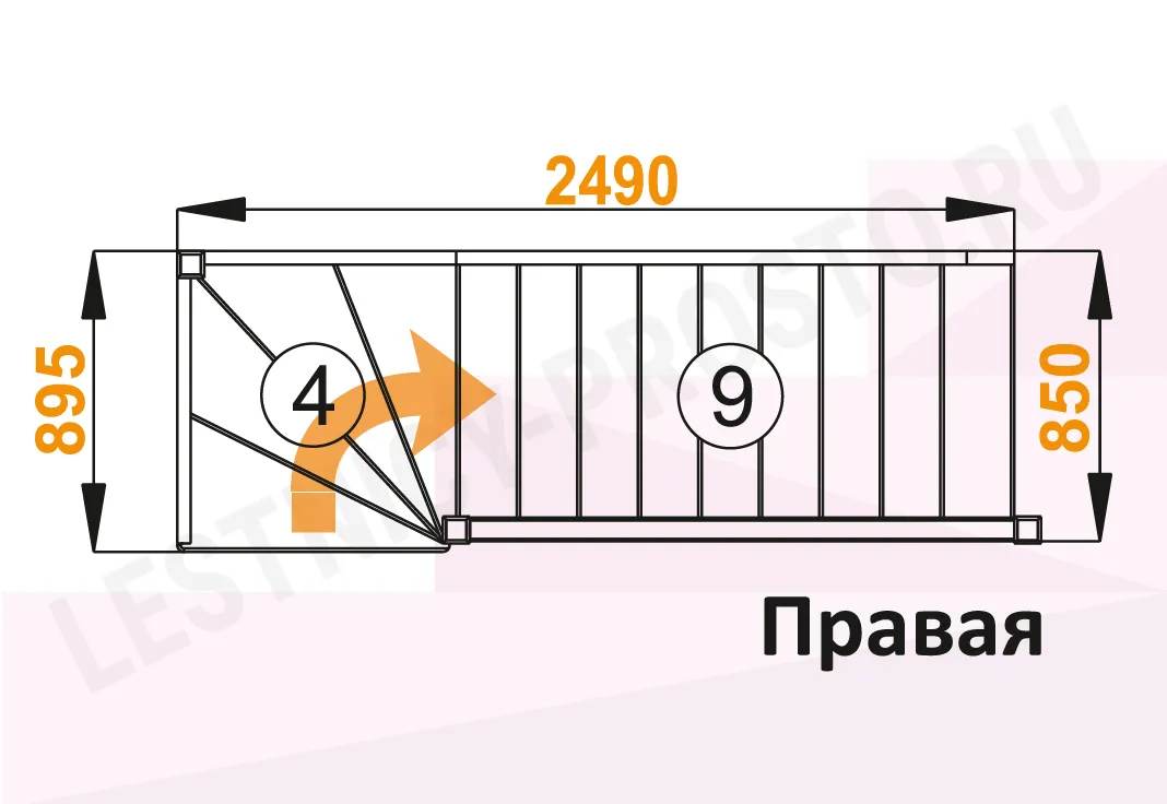 Схема лестницы ЛС-07М/1 с поворотом направо