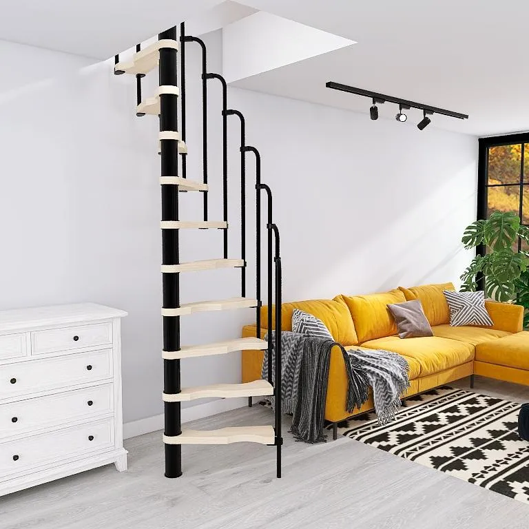 Универсальная лестница, имеющая в основе своей конструкции наклонную опорную балку. Легко впишется в любой интерьер, даже на неровном полу. Место под площадкой можно закрыть и использовать для хранения различных предметов. Монтаж осуществляется силами двух человек на объекте по указаниям, приведенным в паспорте на лестницу.