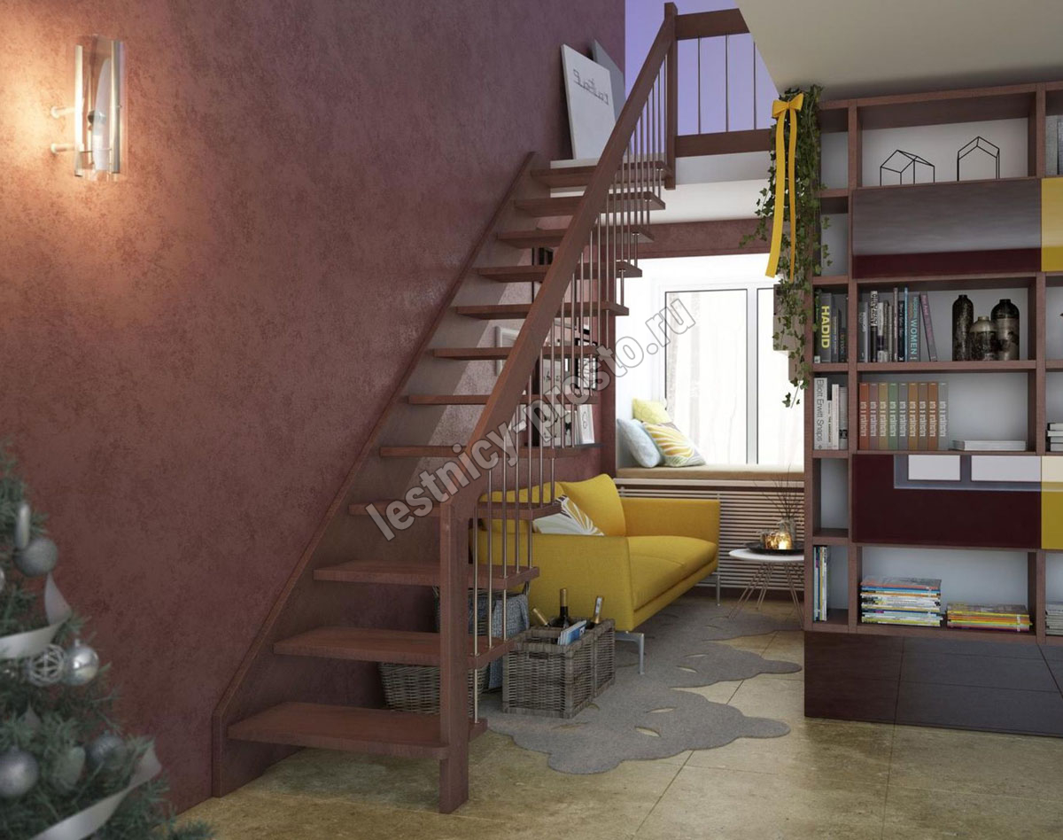возможна комбинированная лестница: из сосны (ступени бук, ясень, дуб);
