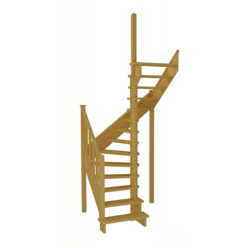 Классическая модель поворотной лестницы раскрывает всю природную красоту натуральных материалов. У лестницы комфортная высота шага, удобный широкий марш и угол подъема. Лестница изготавливается под заказ. Возможны варианты подходящие под разные размеры проёма. Базовое ограждение можно заменить на кованое или точеное. В дополнение можно приобрести бортики, подступени, или мини-подступени. Первую ступень можно заменить на пригласительную - лекальную. Стоимость указана для лестницы без какого-либо покрытия.