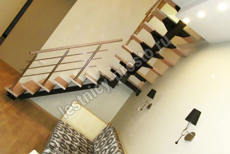 Комплект ограждений для П-образной лестницы PROSTO MONO из 11 ступеней.