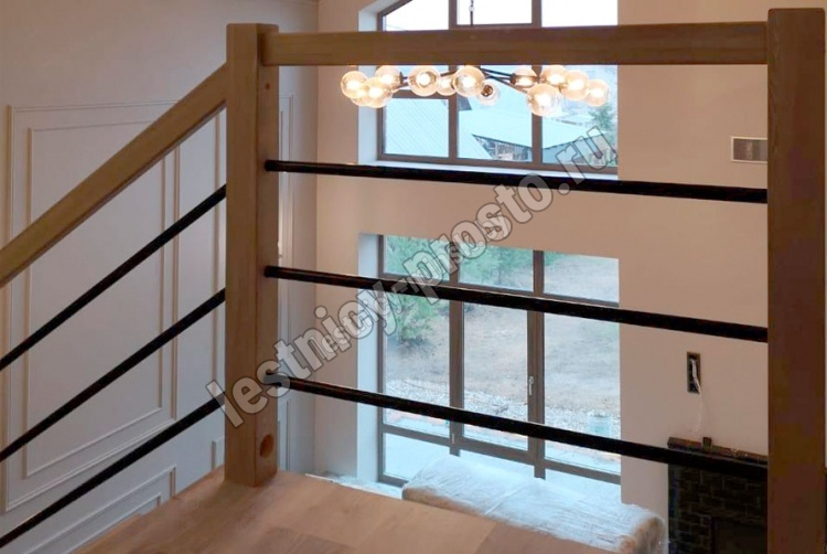 В комплекте: столбы и профильный поручень из бука без какого-либо покрытия, комплект из 3 стальных ригелей (окрашены в цвет каркаса или хром по желанию) диаметром 12 мм. Вы можете заказать у нас предварительную профессиональную покраску деревянных элементов в любой цвет.