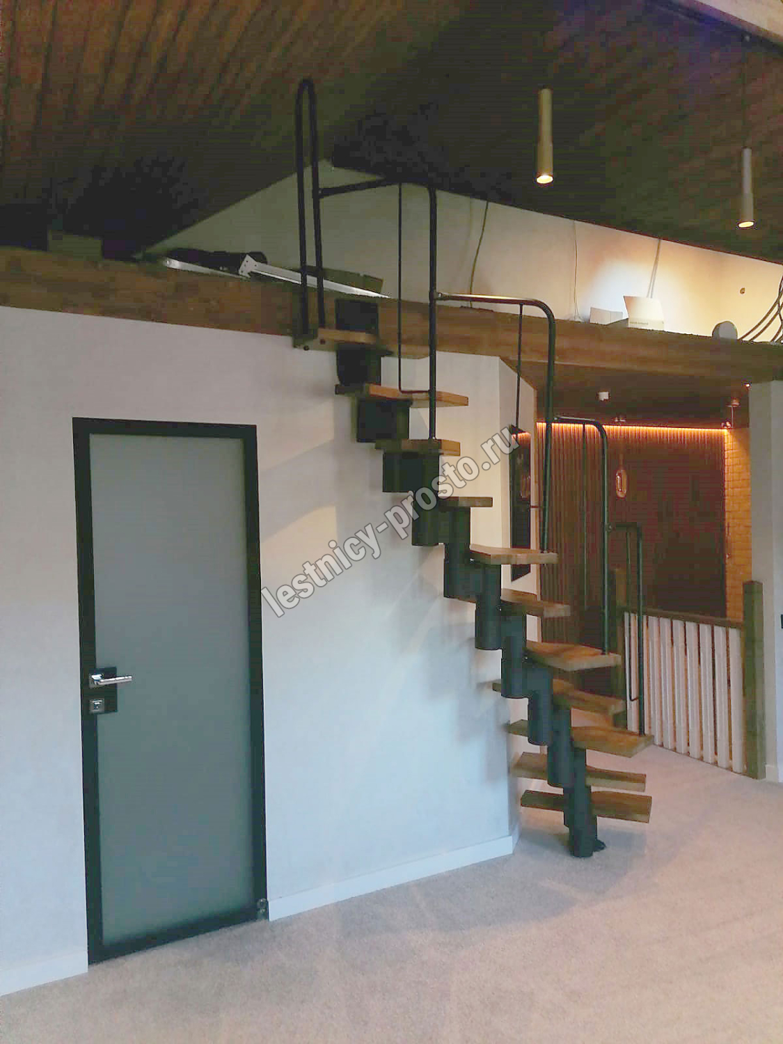 Лестница Prosto Urban Black гусиный шаг 700 мм, h234-336 см (13 ступеней), берёза мультиплекс