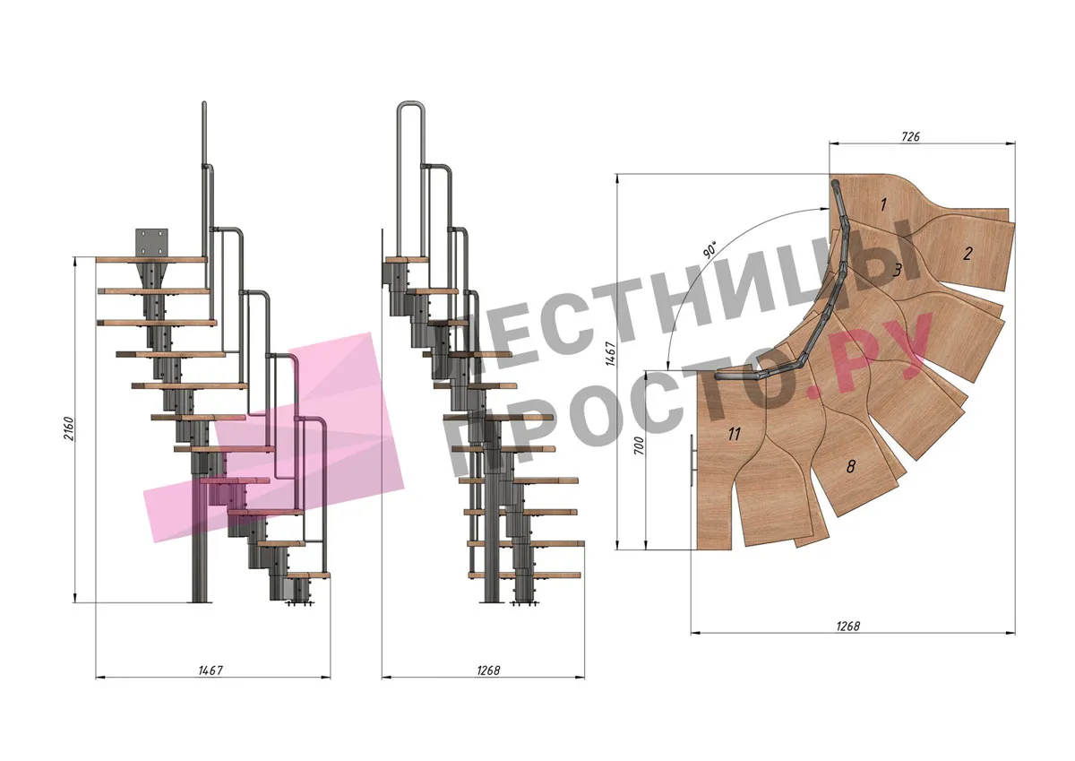 | Лестница Prosto Urban Black гусиный шаг 700 мм, h216-312 см (12 ступеней), бук |