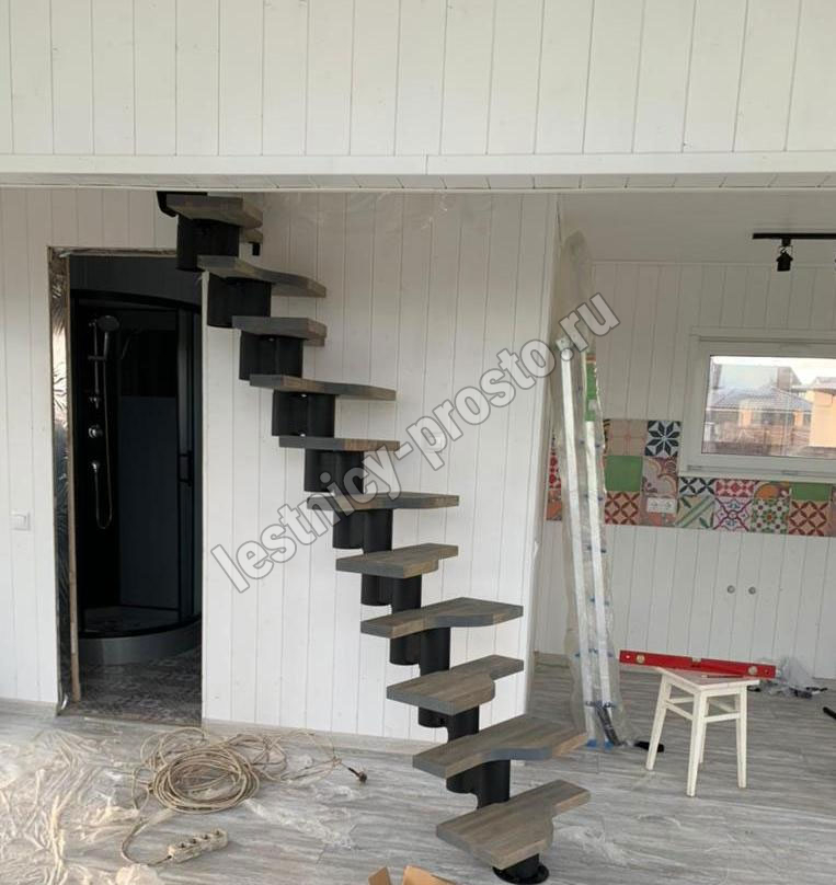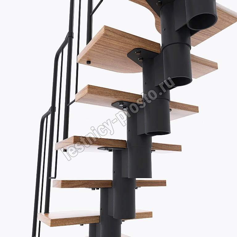 Лестница Prosto Urban Black гусиный шаг 600 мм, h198-288 см (11 ступеней), дуб