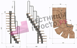 Высота лестницы 2160 - 3120 (12 ступеней) мм