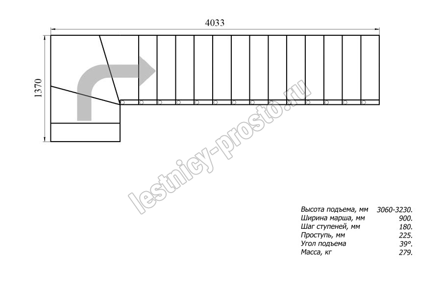 Модульная лестница Фаворит 180 3060-3230, Черный, Сосна, Нержавеющая сталь