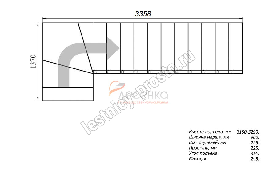 Модульная лестница Фаворит 225 3150-3290, Белый, Сосна, Крашеная