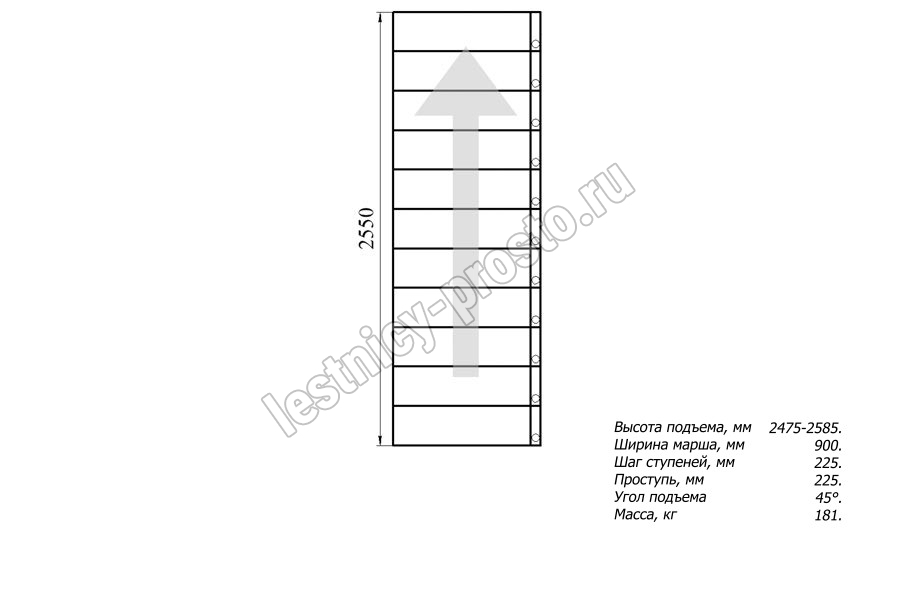 Модульная лестница Стандарт 2475-2585, Белый, Сосна, Нержавеющая сталь