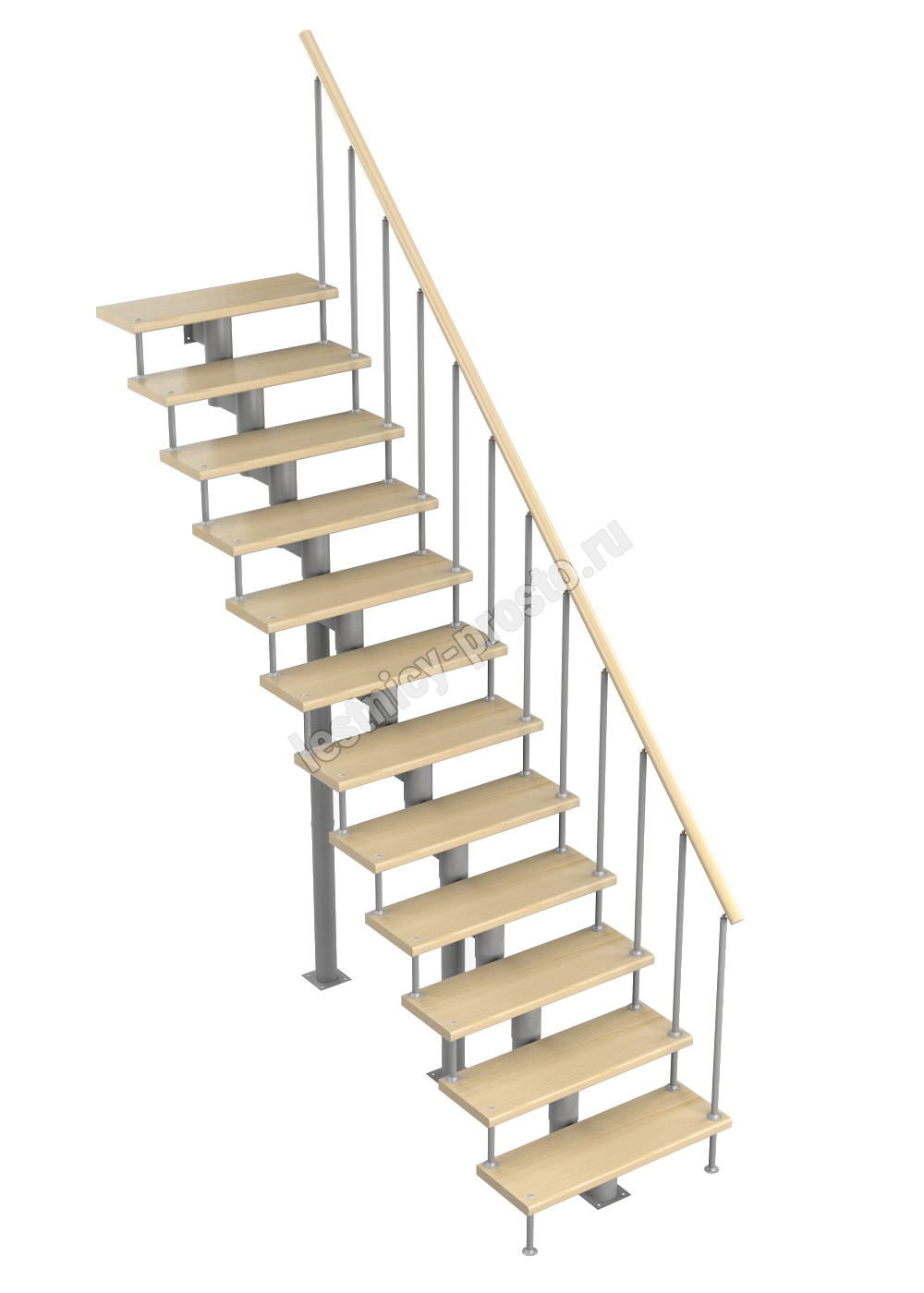 Модульная лестница Стандарт 2700-2820, Серый, Бук, Нержавеющая сталь