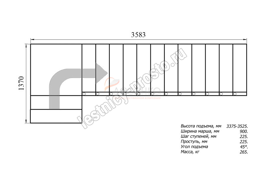 Модульная лестница Статус 225 3375-3525, Серый, Сосна, Крашеная