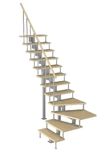 Модульная малогабаритная лестница Эксклюзив 2250-2475, Серый, Сосна, Нержавеющая сталь