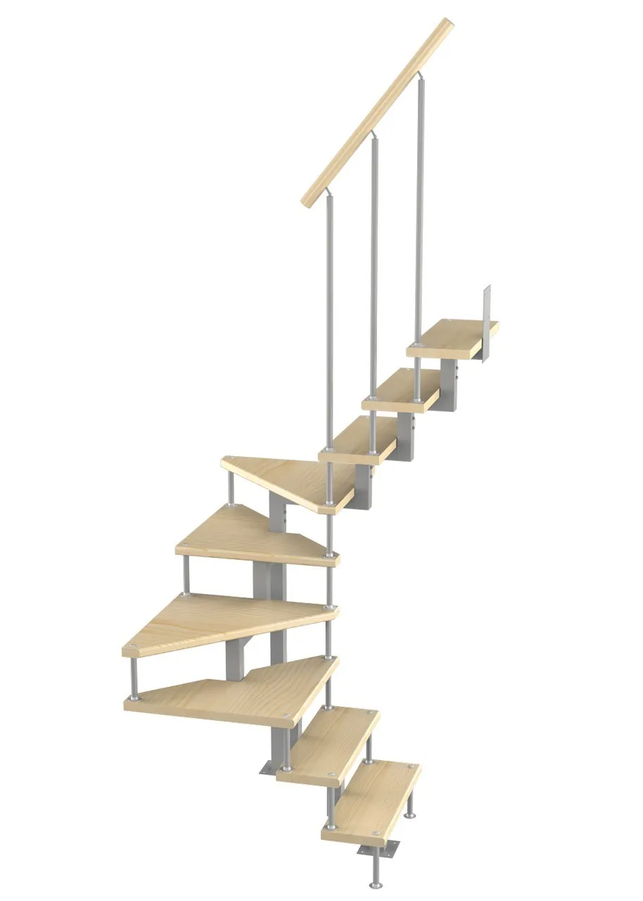 Модульная малогабаритная лестница Компакт 2475-2700, Серый, Лиственница, Нержавеющая сталь