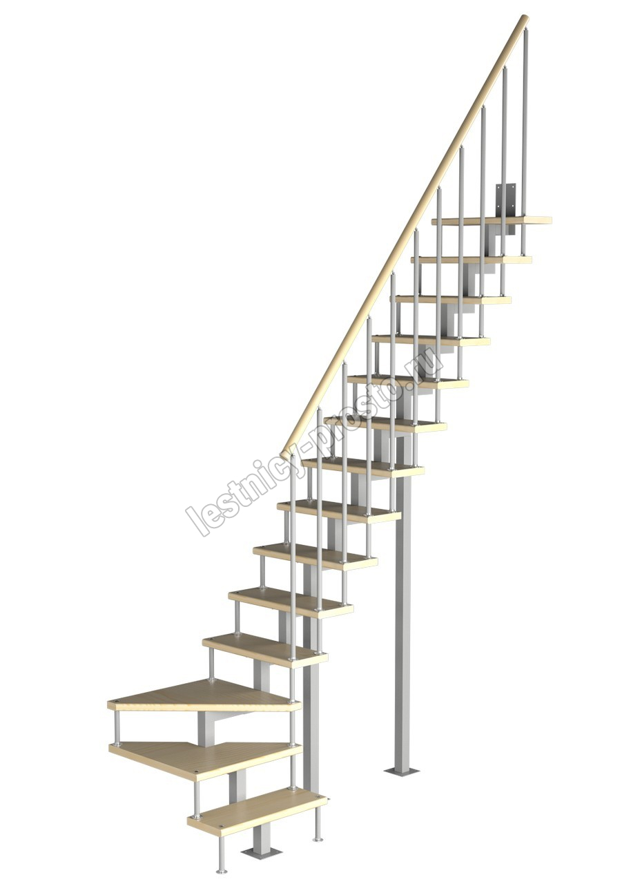 Модульная малогабаритная лестница Компакт 3150-3375, Белый, Лиственница, Нержавеющая сталь