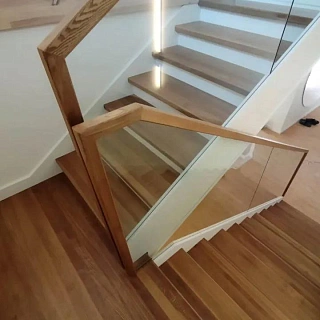 Стеклянная лестница из ясеня LP-2935 с металлическим каркасом