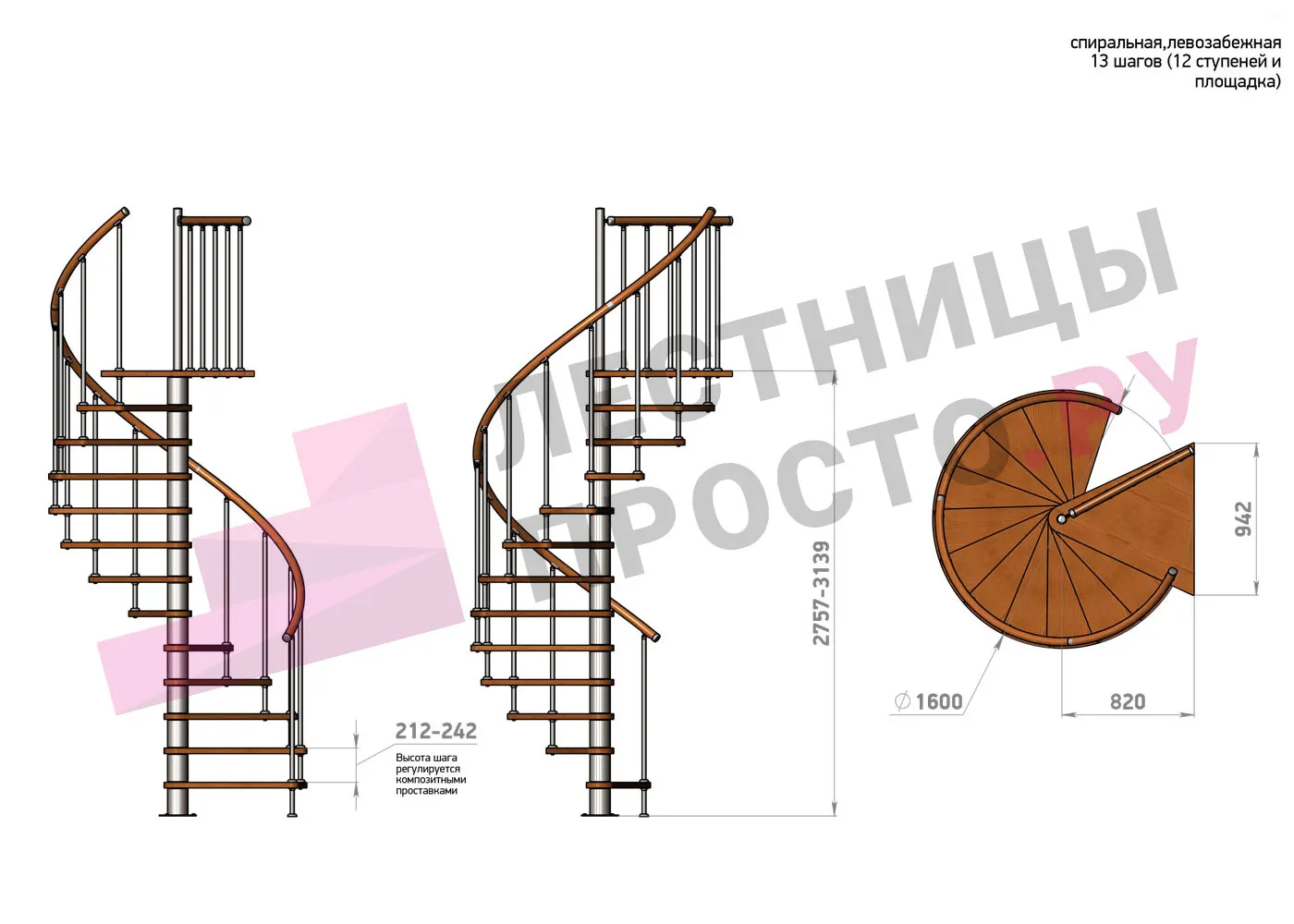 | Винтовая лестница Prosto Spiral Black D160см, h275.7-313.9 см |