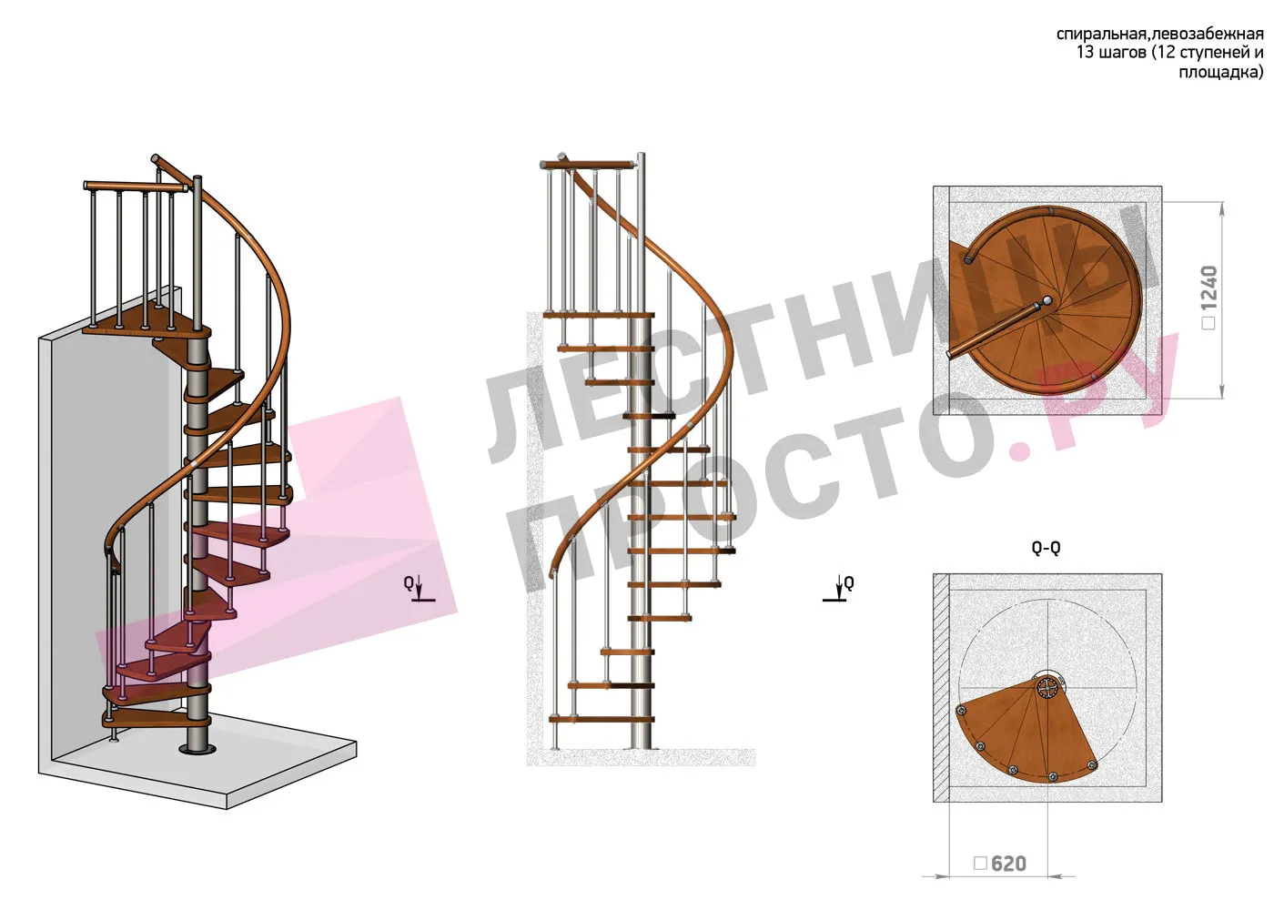 Решение об ориентации поворота принимается при сборке лестницы (комплект собирается и в правозабежную, и в левозабежную лестницу).