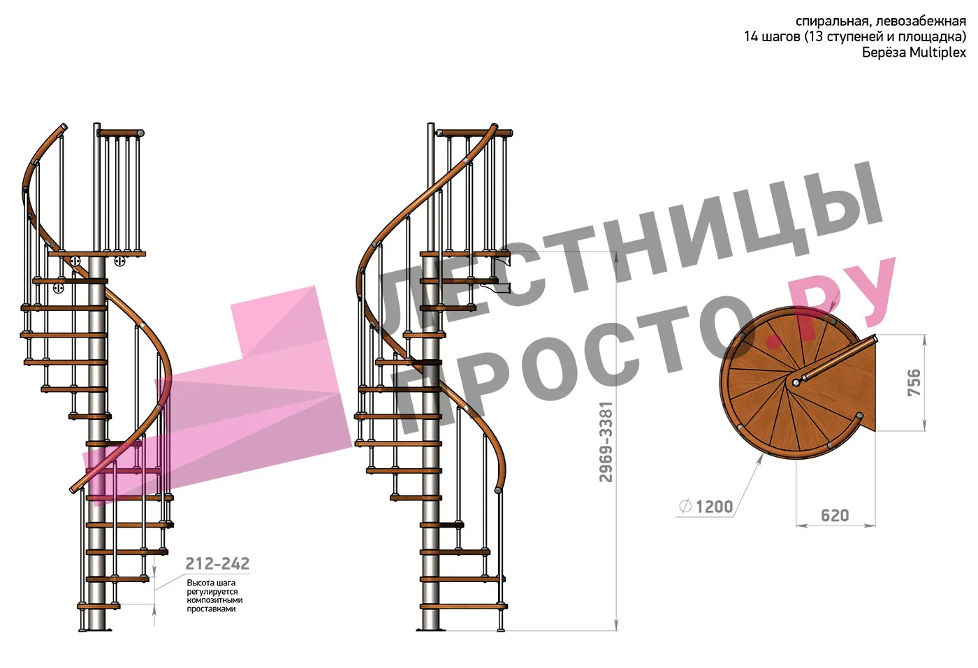 Винтовая лестница Prosto Spiral White D120см, h296.9-338.1 см
