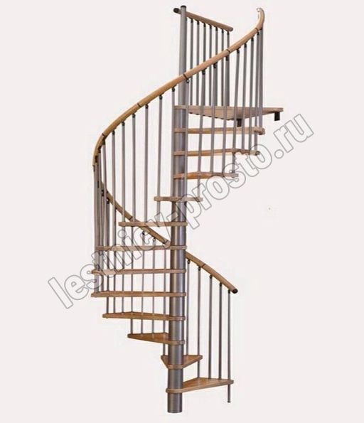 Винтовая лестница SPIRAL WOOD d160 см, серебро, лакированный бук