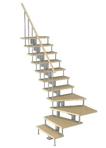 Лестница представлена в двух вариантах: с поворотом направо и с поворотом налево. Благодаря возможности регулировать высоту шага с помощью пластиковых вставок (входят в базовый комплект), высоту лестницы можно варьировать в пределах от 2860 до 3090 мм. Кроме того, купив дополнительную секцию для этой лестницы, можно поднять высоту до 3320 мм.