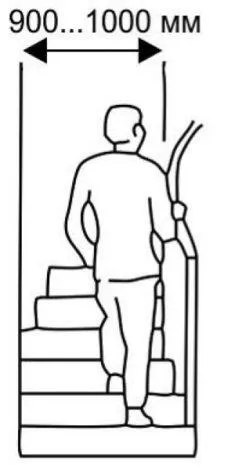 Ширина лестничного марша расстояние, измеряемое между правым и левым поручнем либо между поручнем и стеной. Стандартной шириной марша принят показатель 90-100 см, но более комфортным будут марши с шириной 130-150 см. Для вспомогательных лестниц допустима ширина 80 см.