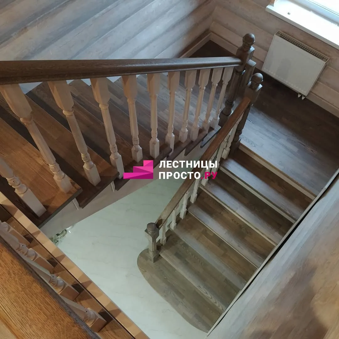 Лестница из ясеня с фигурными балясинами в частном доме по индивидуальному проекту LP-1-46